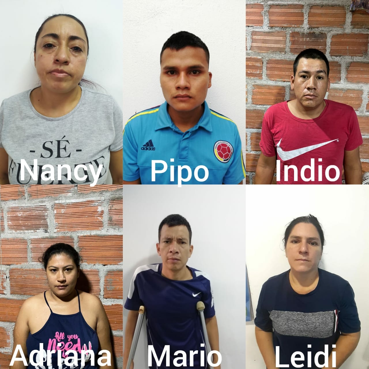 Dentro de las personas puestas a disposición de la justicia figuran los cabecillas principales de la estructura conocidos como ‘Henry’ y ‘Paola’, los distribuidores y/o transportadores ‘Félix’, ‘Pipo’ y ‘Pipe’ y los expendedores ‘Indio’, ‘Yaneth’, ‘Polar o la Ojona’’, ‘Adriana’, ‘Care Loco o El Loco Mario’, ‘Ñeke’, ‘Leidi’, ‘Elidenia’ y ‘Nancy’.