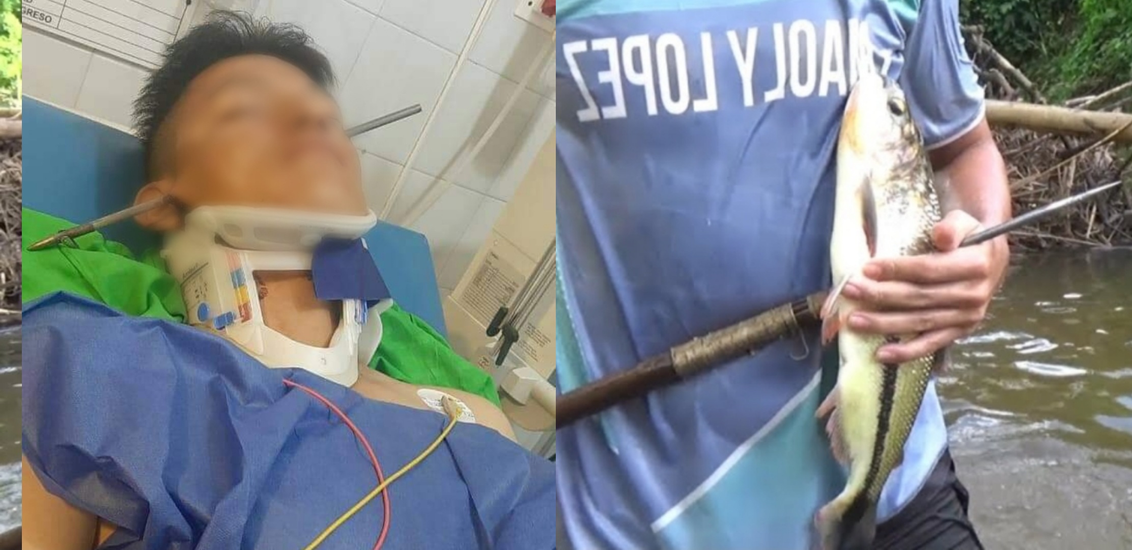 Un impresionante accidente laboral sufrió José Diacono Piñacue de 31 años, cuando realizaba actividad de pesca artesanal con arpón en la quebrada la Yaguilga, en el Municipio del Agrado, el hombre fue alcanzado por la lanza de un arpón el cual atravesó su rostro, ingresó cerca del ojo izquierdo y salió a un costado de su oído derecho.
